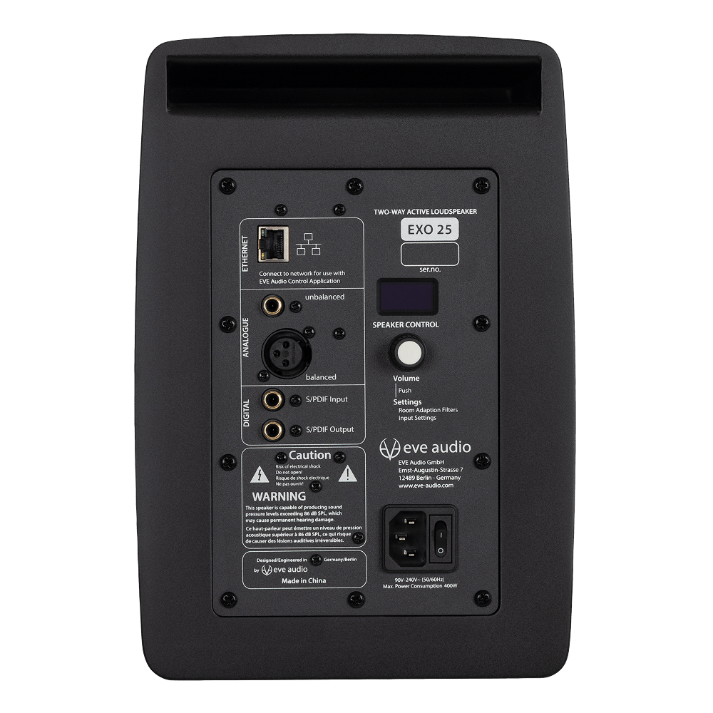 EVE Audio EXO 25 — это активный монитор ближнего поля. Это превосходный выбор для профессиональных студий, амбициозных продюсеров и всех, кто ценит не только акустическую точность, но и высокую производительность — без каких-либо компромиссов. Благодаря контролируемым характеристикам направленности, EXO 25 также отлично подходит для иммерсивных форматов, таких как Dolby Atmos. Для удобства установки модель оснащена четырьмя резьбовыми монтажными отверстиями M6 на нижней стороне корпуса.