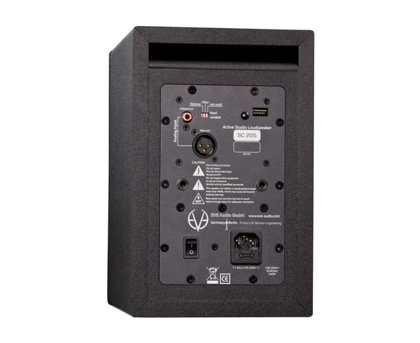 EVE Audio SC205 — профессиональный активный монитор ближнего поля, предназначенный для точного воспроизведения звука в студии. Компактный корпус и фронтальный фазоинвертор позволяют использовать его даже в небольших помещениях без потери качества низких частот. Монитор оснащён 5-дюймовым низкочастотным динамиком из пропитанного полипропилена, обеспечивающим сбалансированное звучание в нижнем и среднем диапазоне частот. ВЧ-излучатель Air Motion Transformer (AMT RS1) обеспечивает детализированное и прозрачное звучание высоких частот. Каждый динамик имеет отдельный усилитель мощностью 50 Вт класса D. Встроенный цифровой процессор (DSP) с высокоточным регулятором уровня и параметрическим эквалайзером позволяет гибко адаптировать монитор под акустические условия помещения. SC205 поддерживает балансный XLR- и небалансный RCA-входы, что делает его совместимым с различными студийными и мультимедийными системами. Максимальный уровень звукового давления (SPL) 101 дБ позволяет использовать монитор не только для сведения, но и для точного контроля микса. Благодаря компактному дизайну, высококачественному ВЧ-излучателю и мощной акустической системе, EVE Audio SC205 — идеальный выбор для профессионалов, которым требуется кристально чистый, точный и сбалансированный мониторинг.